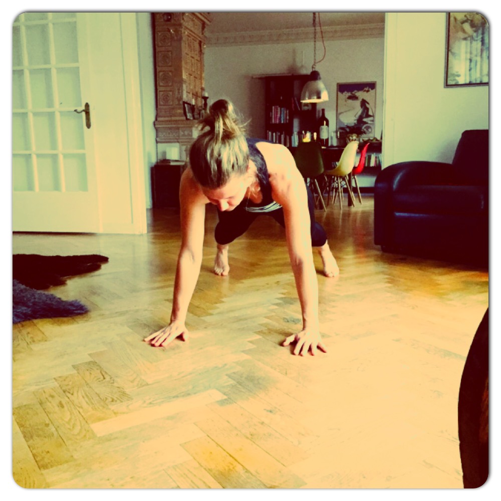 Veckans övning är här :-). Idag har jag valt två magövningar. Den första övningen som jag kallar ”Plank pose med axelklapp” fokuserar på hela bålen och även lite armar och axlar.